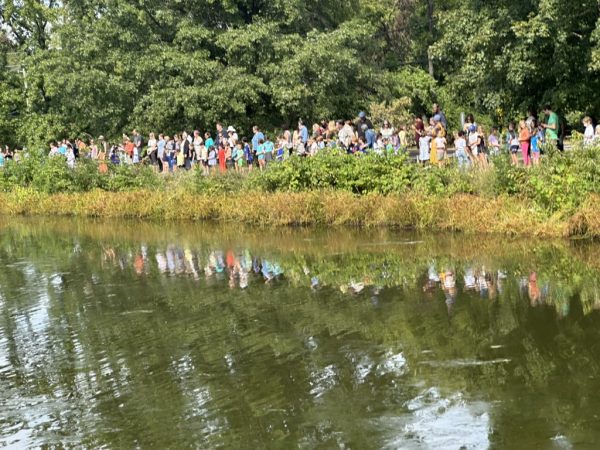 Students, parents and grandparents from Saul Mirowitz Jewish Community School participated in Tashlich, a symbolic ritual in which individuals cast pieces of bread into flowing water to represent letting go of past mistakes and starting anew. During the experience, students reflected on their choices and explored ways to become their best selves in the new Jewish year